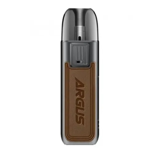 Voopoo Argus Pod - новий компактний пристрій, який забезпечує високу продуктивність. Його дизайн трохи нагадує раніше випущений Voopo Argus Air, проте має незначні відмінності. Корпус пристрою виконаний із цинкового сплаву темно-сірого кольору і має гладку на дотик матову поверхню. Шкіряні вставки, що розміщені з обох його боків, є не просто красивим дизайнерським рішенням. Вони забезпечують зручність захоплення. На шкіряних панелях спереду вдрукований логотип «Argus» та «Voopoo» позаду. Argus Pod можна придбати у шести кольорах: чорному, сірому, коричневому, червоному, небесно-блакитному та з карбонового волокна.